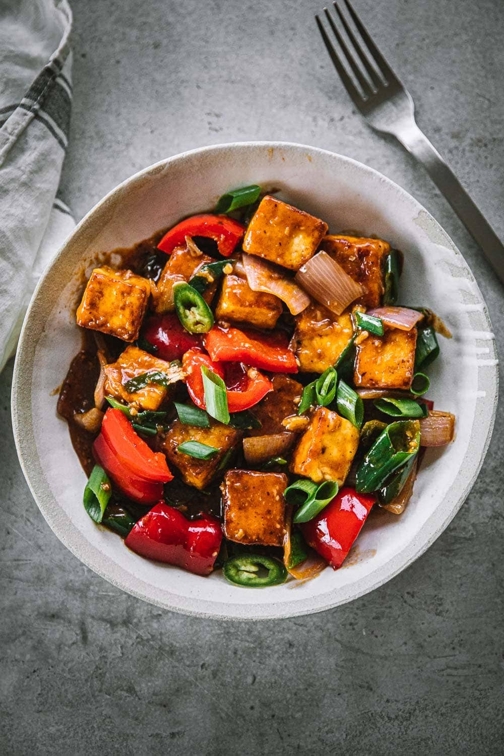 My version is created off the back of the dozens of small Indo-Chinese eating shacks I used to frequent during my college days in Mumbai. And it falls between the dry and gravy versions. I find that by cooking it this way, one can enjoy the delectable paneer cubes by itself after swirling them in all the sauce or it becomes a main accompanied by rice.